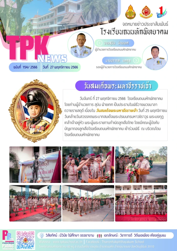 วันสมเด็จพระมหาธีรราชเจ้า ปี 2566By Sirinun S / November 30, 2023 วันจันทร์ ที่ 27 พฤศจิกายน 2566 โรงเรียนถนนหักพิทยาคม โดยท่านผู้อำนวยการ สุบิน ฝ่ายเทศ เป็นประธานในพิธีวางพวงมาลา ถวายราชสดุดี เนื่องใน วันสมเด็จพระมหาธีรราชเจ้า วันที่ 25 พฤศจิกายน วันคล้ายวันสวรรคตพระบาทสมเด็จพระปรเมนทรมหาวชิราวุธ พระมงกุฏเกล้าเจ้าอยู่หัว พระผู้พระราชทานกำเนิดลูกเสือไทย โดยมีคณะผู้บังคับบัญชากองลูกเสือโรงเรียนถนนหักพิทยาคม เข้าร่วมพิธี ณ บริเวณโดมโรงเรียนถนนหักพิทยาคม📑 ข้อมูลโดย : กิจกรรมพัฒนาผู้เรียน🎬 ข่าวสารโดย : งานประชาสัมพันธ์ 🖼️ รูปภาพเพิ่มเติม :