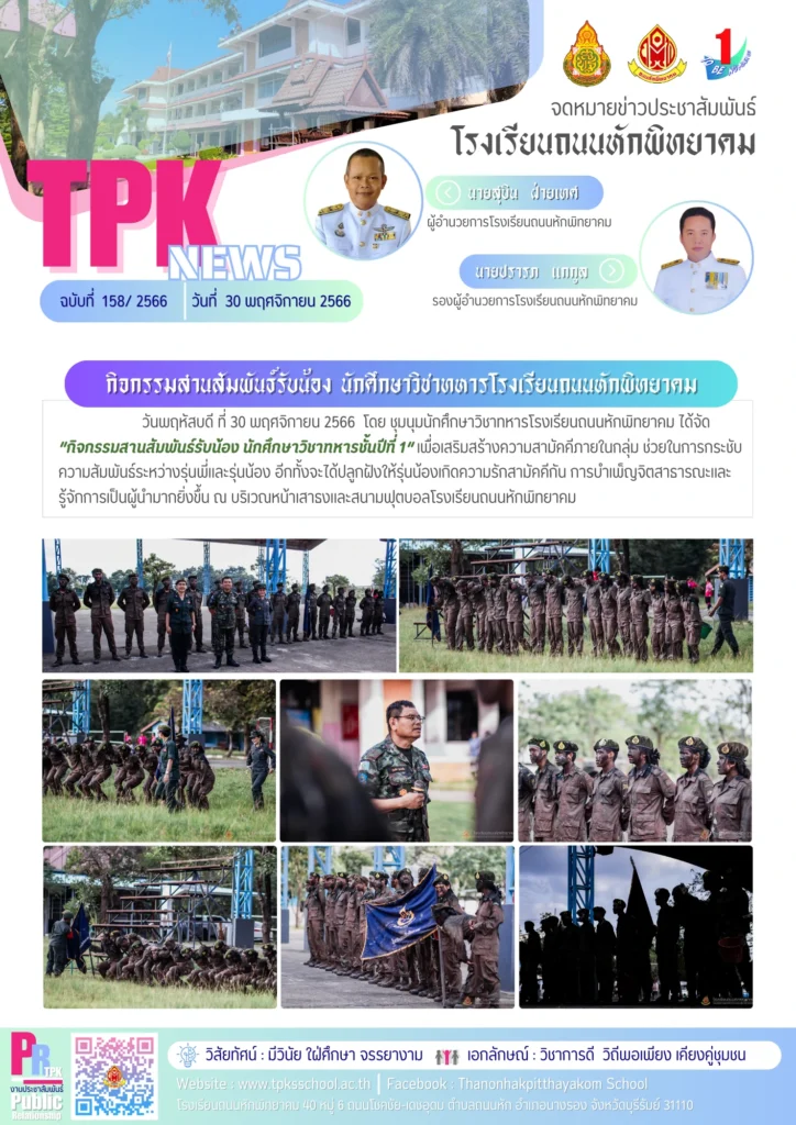 กิจกรรมสานสัมพันธ์รับน้อง นักศึกษาวิชาทหารโรงเรียนถนนหักพิทยาคมBy Sirinun S / December 6, 2023 วันพฤหัสบดี ที่ 30 พฤศจิกายน 2566 โดย ชุมนุมนักศึกษาวิชาทหารโรงเรียนถนนหักพิทยาคม ได้จัด “กิจกรรมสานสัมพันธ์รับน้อง นักศึกษาวิชาทหารชั้นปีที่ 1“ เพื่อเสริมสร้างความสามัคคีภายในกลุ่ม ช่วยในการกระชับความสัมพันธ์ระหว่างรุ่นพี่และรุ่นน้อง อีกทั้งจะได้ปลูกฝังให้รุ่นน้องเกิดความรักสามัคคีกัน การบำเพ็ญจิตสาธารณะและรู้จักการเป็นผู้นำมากยิ่งขึ้น ณ บริเวณหน้าเสาธงและสนามฟุตบอลโรงเรียนถนนหักพิทยาคม📑 ข้อมูลโดย : ชุมนุมนักศึกษาวิชาทหารโรงเรียนถนนหักพิทยาคม🎬 ข่าวสารโดย : งานประชาสัมพันธ์ 🖼️ รูปภาพเพิ่มเติม :