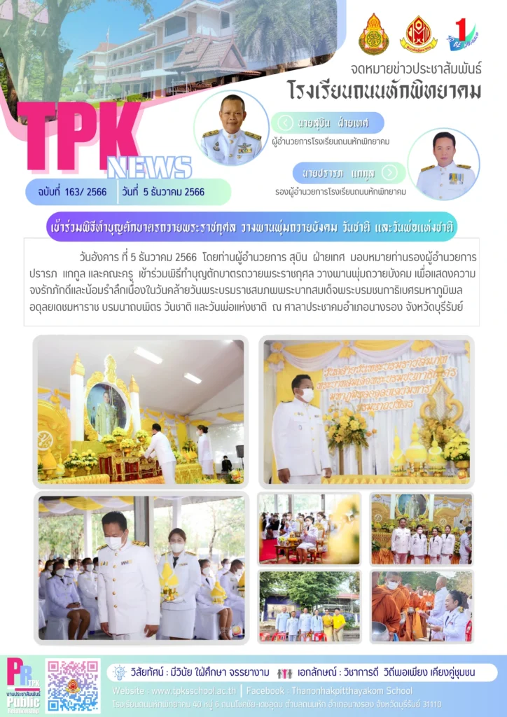 เข้าร่วมพิธีทำบุญตักบาตรถวายพระราชกุศล วางพานพุ่มถวายบังคม วันชาติ และวันพ่อแห่งชาติBy Sirinun S / December 12, 2023 วันอังคาร ที่ 5 ธันวาคม 2566 โดยท่านผู้อำนวยการ สุบิน ฝ่ายเทศ มอบหมายท่านรองผู้อำนวยการปรารภ แกกูล และคณะครู เข้าร่วมพิธีทำบุญตักบาตรถวายพระราชกุศล วางพานพุ่มถวายบังคม เพื่อแสดงความจงรักภักดีและน้อมรำลึกเนื่องในวันคล้ายวันพระบรมราชสมภพพระบาทสมเด็จพระบรมชนกาธิเบศรมหาภูมิพล อดุลยเดชมหาราช บรมนาถบพิตร วันชาติ และวันพ่อแห่งชาติ ณ ศาลาประชาคมอำเภอนางรอง จังหวัดบุรีรัมย์ 📑 ข้อมูลโดย : กลุ่มบริหารงานบุคคล🎬 ข่าวสารโดย : งานประชาสัมพันธ์ 🖼️ รูปภาพเพิ่มเติม :