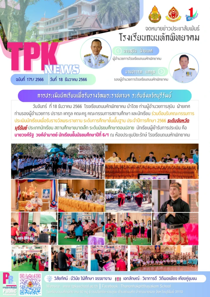 วันจันทร์ ที่ 18 ธันวาคม 2566 โรงเรียนถนนหักพิทยาคม นำโดย ท่านผู้อำนวยการสุบิน ฝ่ายเทศ ท่านรองผู้อำนวยการ ปรารภ แกกูล คณะครู คณะกรรมการสถานศึกษา และนักเรียน ร่วมต้อนรับคณะกรรมการประเมินนักเรียนเพื่อรับรางวัลพระราชทาน ระดับการศึกษาขั้นพื้นฐาน ประจำปีการศึกษา 2566 ระดับจังหวัดบุรีรัมย์ ประเภทนักเรียน สถานศึกษาขนาดเล็ก ระดับมัธยมศึกษาตอนปลาย นักเรียนผู้เข้ารับการประเมิน คือ นายวงศ์รัฐ วงศ์อำมาตย์ นักเรียนชั้นมัธยมศึกษาปีที่ 6/1 ณ ห้องประชุมปิยะรักษ์ โรงเรียนถนนหักพิทยาคม