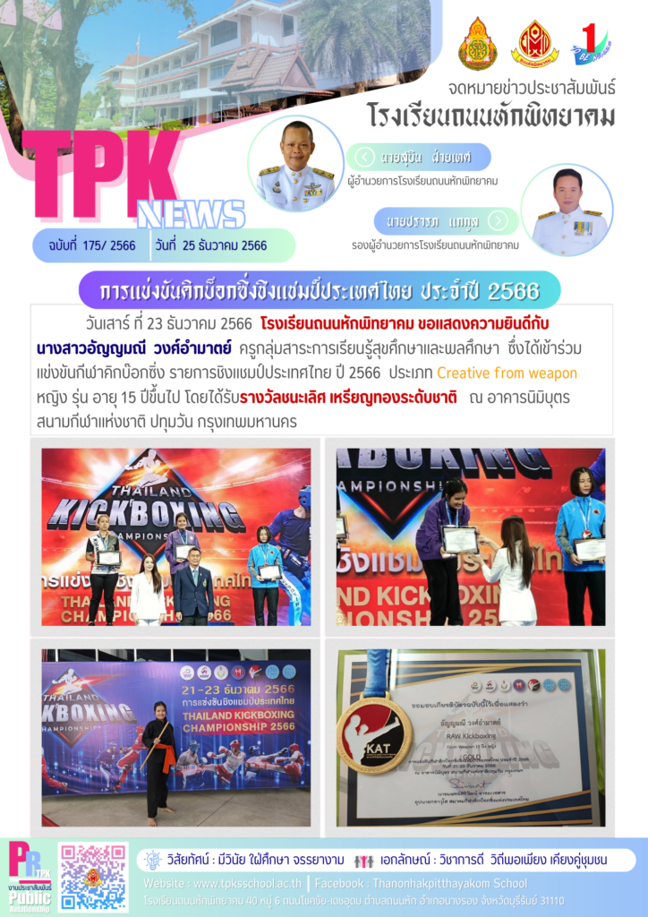การแข่งขันคิกบ็อกซิ่งชิงแชมป์ประเทศไทย ประจำปี 2566By Sirinun S / January 3, 2024 วันเสาร์ ที่ 23 ธันวาคม 2566 โรงเรียนถนนหักพิทยาคม ขอแสดงความยินดีกับ นางสาวอัญญมณี วงศ์อำมาตย์ ครูกลุ่มสาระการเรียนรู้สุขศึกษาและพลศึกษา ซึ่งได้เข้าร่วมแข่งขันกีฬาคิกบ๊อกซิ่ง รายการชิงแชมป์ประเทศไทย ปี 2566 ประเภท Creative from weapon หญิง รุ่น อายุ 15 ปีขึ้นไป โดยได้รับรางวัลชนะเลิศ เหรียญทองระดับชาติ ณ อาคารนิมิบุตร สนามกีฬาแห่งชาติ ปทุมวัน กรุงเทพมหานคร 📑 ข้อมูลโดย : กลุ่มสาระการเรียนรู้สุขศึกษาและพลศึกษา โรงเรียนถนนหักพิทยาคม 🎬 ข่าวสารโดย : งานประชาสัมพันธ์ 🖼️ รูปภาพเพิ่มเติม :