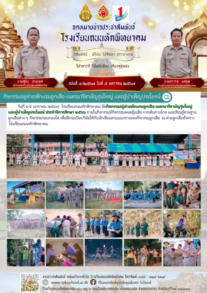 กิจกรรมอยู่ค่ายพักแรมลูกเสือ-เนตรนารีสามัญรุ่นใหญ่ และผู้บำเพ็ญประโยชน์By Sirinun S / January 17, 2024 วันที่ ๔-๕ มกราคม ๒๕๖๗ โรงเรียนถนนหักพิทยาคม จัดกิจกรรมอยู่ค่ายพักแรมลูกเสือ-เนตรนารีสามัญรุ่นใหญ่ และผู้บำเพ็ญประโยชน์ ประจำปีการศึกษา ๒๕๖๖ ภายในกิจกรรมมีกิจกรรมลอดซุ้มเสือ การเดินทางไกล และเรียนรู้ตามฐานลูกเสือต่าง ๆ กิจกรรมรอบกองไฟ เพื่อฝึกระเบียบวินัยให้กับนักเรียนตามแนวทางของกิจกรรมลูกเสือ ณ ค่ายลูกเสือชั่วคราว โรงเรียนถนนหักพิทยาคม 📑 ข้อมูลโดย : กิจกรรมพัฒนาผู้เรียน โรงเรียนถนนหักพิทยาคม 🎬 ข่าวสารโดย : งานประชาสัมพันธ์ 🖼️ รูปภาพเพิ่มเติม :