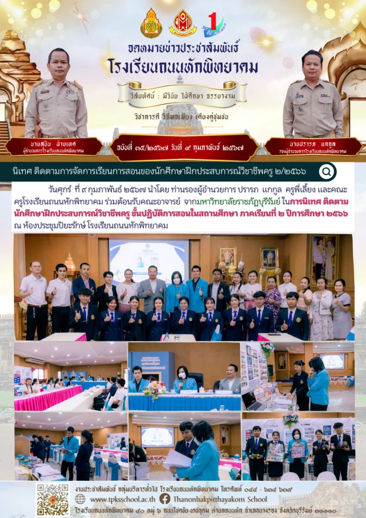 นิเทศ ติดตามการจัดการเรียนการสอนของนักศึกษาฝึกประสบการณ์วิชาชีพครู ๒/๒๕๖๖By Sirinun S / March 23, 2024 วันศุกร์ ที่ ๙ กุมภาพันธ์ ๒๕๖๗ นำโดย ท่านรองผู้อำนวยการ ปรารภ แกกูล ครูพี่เลี้ยง และคณะครูโรงเรียนถนนหักพิทยาคม ร่วมต้อนรับคณะอาจารย์ จากมหาวิทยาลัยราชภัฏบุรีรัมย์ ในการนิเทศ ติดตามนักศึกษาฝึกประสบการณ์วิชาชีพครู ขั้นปฏิบัติการสอนในสถานศึกษา ภาคเรียนที่ ๒ ปีการศึกษา ๒๕๖๖ ณ ห้องประชุมปิยะรักษ์ โรงเรียนถนนหักพิทยาคม📑 ข้อมูลโดย : กลุ่มบริหารวิชาการ โรงเรียนถนนหักพิทยาคม🎬 ข่าวสารโดย : งานประชาสัมพันธ์ 🖼️ รูปภาพเพิ่มเติม :