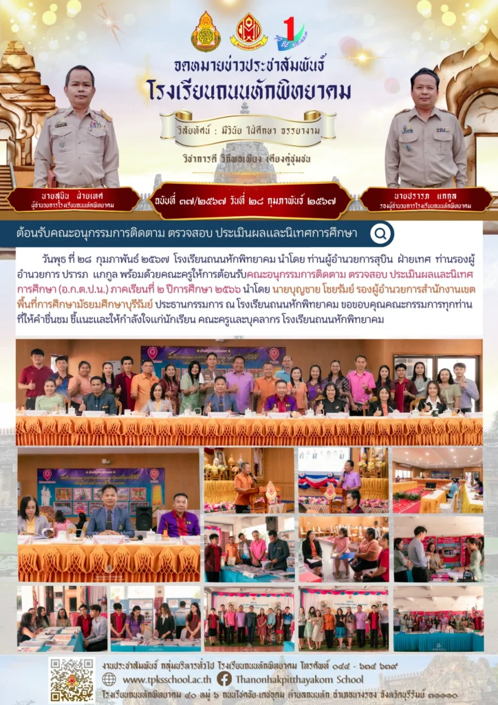 วันพุธ ที่ ๒๘ กุมภาพันธ์ ๒๕๖๗ โรงเรียนถนนหักพิทยาคม นำโดย ท่านผู้อำนวยการสุบิน ฝ่ายเทศ ท่านรองผู้อำนวยการ ปรารภ แกกูล พร้อมด้วยคณะครูให้การต้อนรับคณะอนุกรรมการติดตาม ตรวจสอบ ประเมินผลและนิเทศการศึกษา (อ.ก.ต.ป.น.) ภาคเรียนที่ ๒ ปีการศึกษา ๒๕๖๖ นำโดย นายบุญชาย โชยรัมย์ รองผู้อำนวยการสำนักงานเขตพื้นที่การศึกษามัธยมศึกษาบุรีรัมย์ ประธานกรรมการ ณ โรงเรียนถนนหักพิทยาคม ขอขอบคุณคณะกรรมการทุกท่าน ที่ให้คำชื่นชม ชี้แนะและให้กำลังใจแก่นักเรียน คณะครูและบุคลากร โรงเรียนถนนหักพิทยาคม
