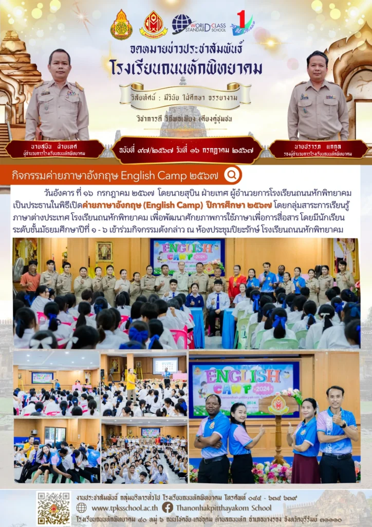 กิจกรรมค่ายภาษาอังกฤษ English Camp ๒๕๖๗By Sirinun S / July 23, 2024 วันอังคาร ที่ ๑๖ กรกฎาคม ๒๕๖๗ โดยนายสุบิน ฝ่ายเทศ ผู้อำนวยการโรงเรียนถนนหักพิทยาคมเป็นประธานในพิธีเปิดค่ายภาษาอังกฤษ (English Camp) ปีการศึกษา ๒๕๖๗ โดยกลุ่มสาระการเรียนรู้ภาษาต่างประเทศ โรงเรียนถนหักพิทยาคม เพื่อพัฒนาศักยภาพการใช้ภาษาเพื่อการสื่อสาร โดยมีนักเรียน ระดับชั้นมัธยมศึกษาปีที่ ๑ – ๖ เข้าร่วมกิจกรรมดังกล่าว ณ ห้องประชุมปิยะรักษ์ โรงเรียนถนนหักพิทยาคม📑 ข้อมูลโดย : กลุ่มสาระการเรียนรู้ภาษาต่างประเทศ โรงเรียนถนนหักพิทยาคม🎬 ข่าวสารโดย : งานประชาสัมพันธ์ 🖼️ รูปภาพเพิ่มเติม :