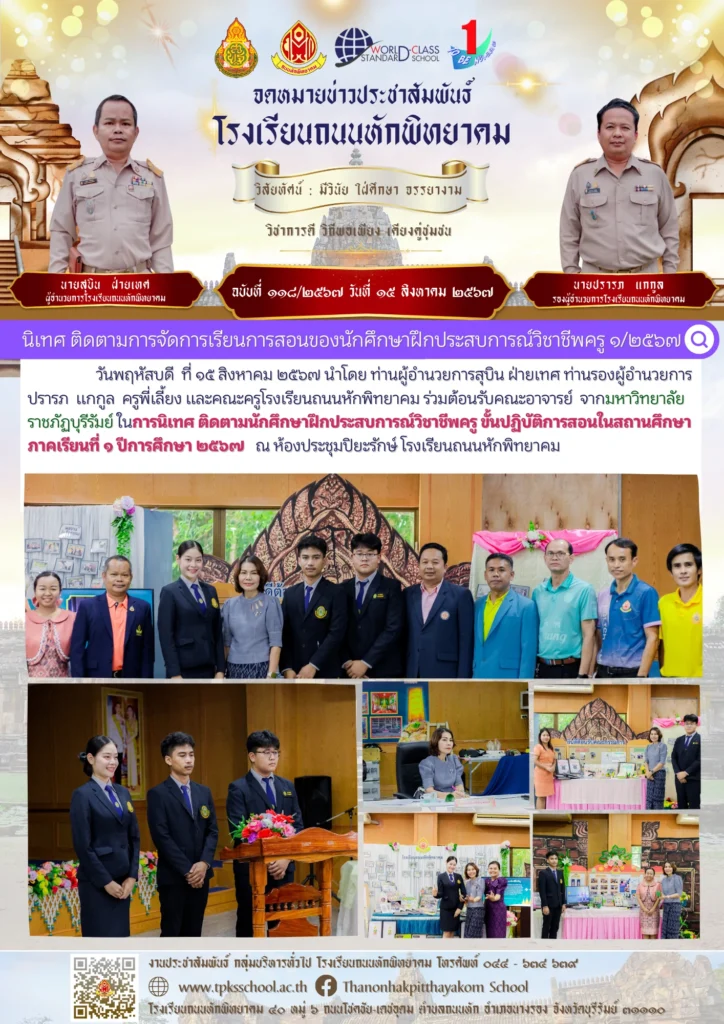 นิเทศ ติดตามการจัดการเรียนการสอนของนักศึกษาฝึกประสบการณ์วิชาชีพครู ๑/๒๕๖๗By Sirinun S / August 23, 2024 วันพฤหัสบดี ที่ ๑๕ สิงหาคม ๒๕๖๗ นำโดย ท่านผู้อำนวยการสุบิน ฝ่ายเทศ ท่านรองผู้อำนวยการ ปรารภ แกกูล ครูพี่เลี้ยง และคณะครูโรงเรียนถนนหักพิทยาคม ร่วมต้อนรับคณะอาจารย์ จากมหาวิทยาลัยราชภัฏบุรีรัมย์ ในการนิเทศ ติดตามนักศึกษาฝึกประสบการณ์วิชาชีพครู ขั้นปฏิบัติการสอนในสถานศึกษา ภาคเรียนที่ ๑ ปีการศึกษา ๒๕๖๗ ณ ห้องประชุมปิยะรักษ์ โรงเรียนถนนหักพิทยาคม📑 ข้อมูลโดย : กลุ่มบริหารวิชาการ โรงเรียนถนนหักพิทยาคม🎬 ข่าวสารโดย : งานประชาสัมพันธ์ 🖼️ รูปภาพเพิ่มเติม :