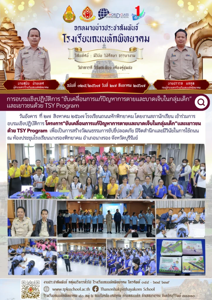 โครงการ“ขับเคลื่อนการแก้ปัญหาการตายและบาดเจ็บในกลุ่มเด็กและเยาวชนด้วย TSY ProgramBy Sirinun S / September 4, 2024 วันอังคาร ที่ ๒๗ สิงหาคม ๒๕๖๗ โรงเรียนถนนหักพิทยาคม โดยงานสภานักเรียน เข้าร่วมการอบรมเชิงปฏิบัติการ โครงการ“ขับเคลื่อนการแก้ปัญหาการตายและบาดเจ็บในกลุ่มเด็กและเยาวชนด้วย TSY Program เพื่อเป็นการสร้างวัฒนธรรมการขับขี่ปลอดภัย มีจิตสำนึกและมีวินัยในการใช้ถนน ณ ห้องประชุมโรงเรียนนางรองพิทยาคม อำเภอนางรอง จังหวัดบุรีรัมย์ 📑 ข้อมูลโดย : งานสภานักเรียน โรงเรียนถนนหักพิทยาคม 🎬 ข่าวสารโดย : งานประชาสัมพันธ์ 🖼️ รูปภาพเพิ่มเติม :