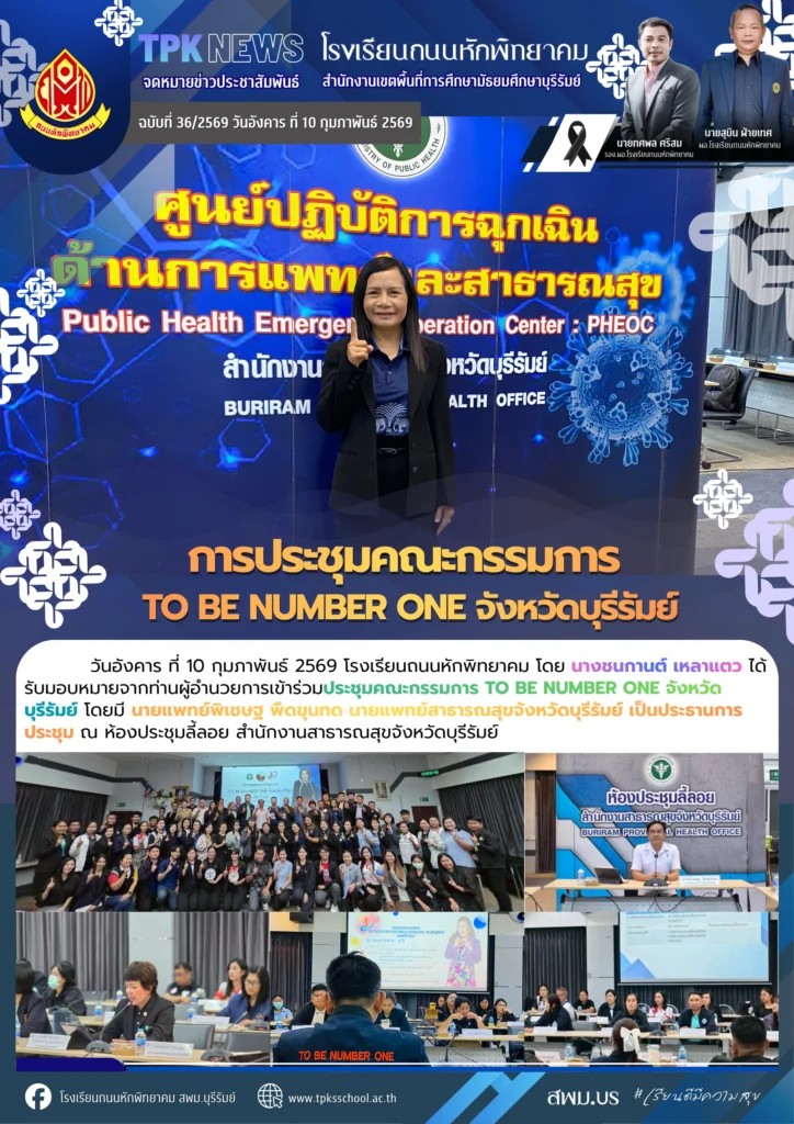 การประชุมคณะกรรมการ TO BE NUMBER ONE จังหวัดบุรีรัมย์By Sirinun S / February 13, 2026 วันอังคาร ที่ 10 กุมภาพันธ์ 2569 โรงเรียนถนนหักพิทยาคม โดย นางชนกานต์ เหลาแตว ได้รับมอบหมายจากท่านผู้อำนวยการเข้าร่วมประชุมคณะกรรมการ TO BE NUMBER ONE จังหวัดบุรีรัมย์ โดยมี นายแพทย์พิเชษฐ พืดขุนทด นายแพทย์สาธารณสุขจังหวัดบุรีรัมย์ เป็นประธานการประชุม ณ ห้องประชุมลี้ลอย สำนักงานสาธารณสุขจังหวัดบุรีรัมย์ 📑 ข้อมูลโดย : ชมรม TO BE NUMBER ONE โรงเรียนถนนหักพิทยาคมข่าวสารโดย : งานประชาสัมพันธ์ 🖼️ รูปภาพเพิ่มเติม :